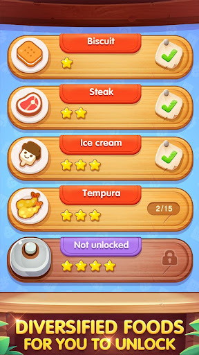 Enjoy the happy time to unlock tasty food like dessert, cookies, cakes, hamburgers and more.