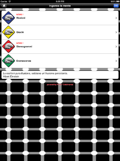 Fools the mind is an application that brings together the best optical illusions, the mind games that bring into contrast the left and right sides of the brain, stereograms and geometric evanescences.