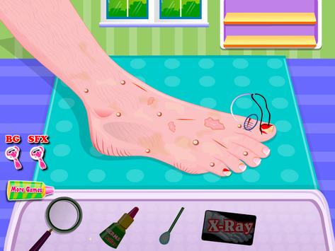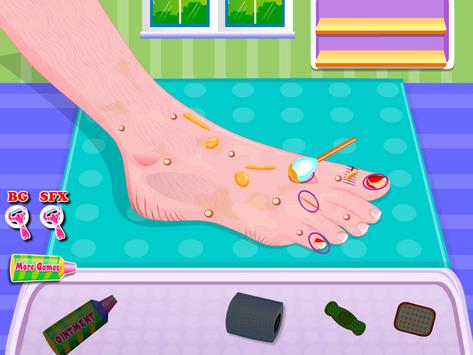 Girls are very particular when it comes to their feet. Not all girls are beautiful and neat feet so I have to take care of them. At our salon came a girl with many dirty marks and scratches on foot and you really need to help to make them beautiful legs as she wants it long. For starters, his foot and spins out to clean the blood produced by them. We need to administer an injection to not feel very much pain because we start to work on the patient's open wounds. We need to eliminate bacteria and to stitch a wound deep enough. Further he must cover scratches and bruises eliminate them from the fingers. We need to head heels as they are very dry and warped, we must break baskets on the legs and to remove hair because it looks ugly. Then he must cut toenails and recommending to a shoe. Please try other games for girls in this series to see if indeed you're doing.