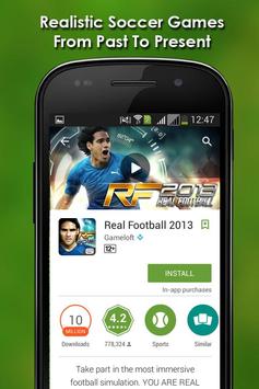 Various kinds of Football Games chosen meticulously are in one app. If you want to play the games, install them. You cannot play them on our app, you are directed to the android market to install them. This app offers an alternative way to search games. Please note that it requires internet connectivity.