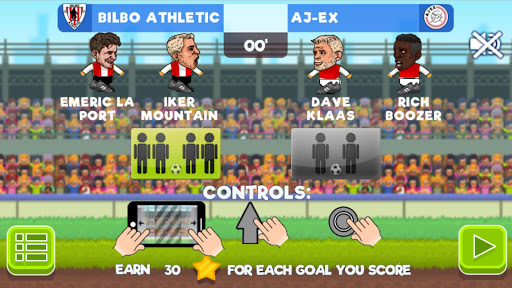 This game also brings improved, intuitive, touch controls - press the left or right side of the screen to move your footballer, swipe up to jump, make a quick tap to kick. When facing head to head with the opponent, do not try to kick the ball - just push him to the right and wait for him to jump.