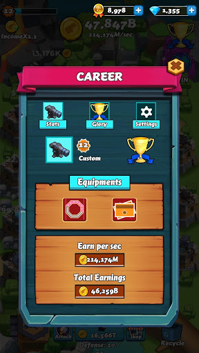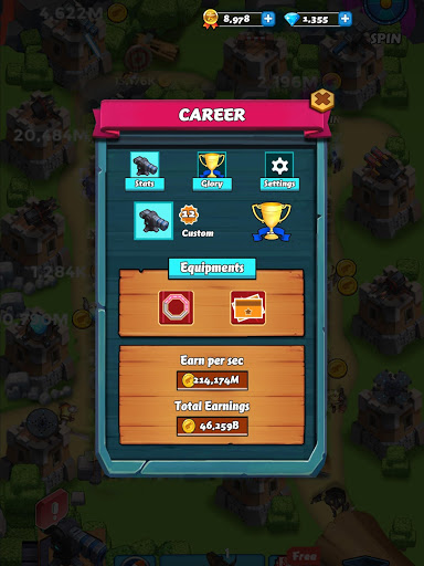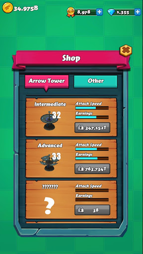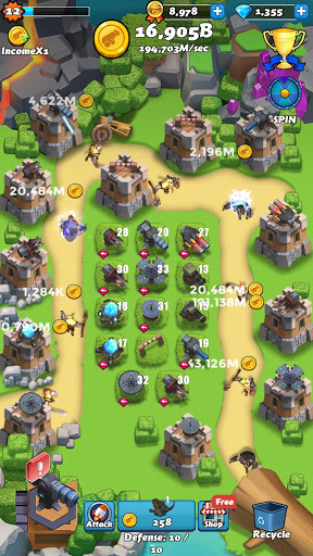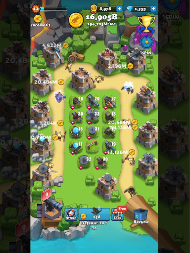 Merge the same tower to a higher level one! Place it to attack the monster to get gold!