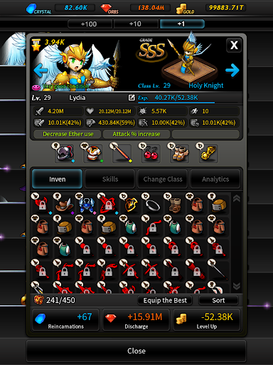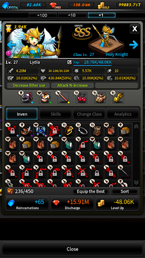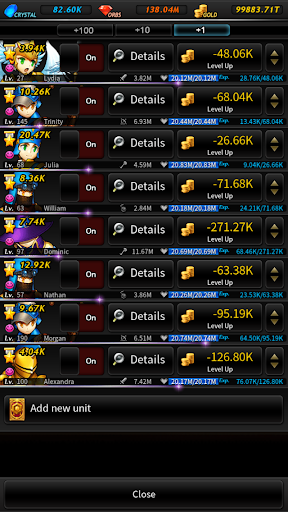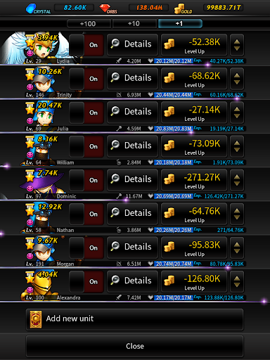 6. When reaching level 100, units can reincarnate. Reincarnation make units level 1, but all growth points will remain and you will receive Crystals as a reward.