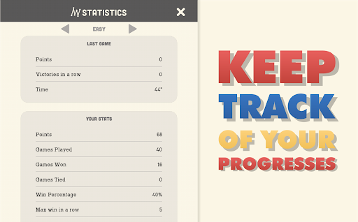 Connect 4 pieces of your colour in a line before your opponent. The popular game is now in your hands every time you can spare a moment for a challenge or a bit of relax. Excellent for testing your skills or teaching strategy to kids. Play multiplayer with a friend or try to beat our well-trained virtual players and see your improvements game by game.