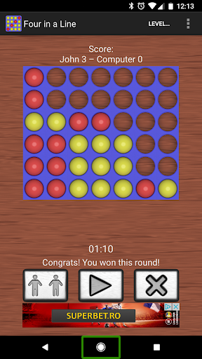 4 in a Line or Four in a Row is a two-player connection game in which the players first choose a color and then take turns dropping colored discs from the top into a seven-column, six-row vertically grid.