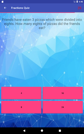 1️⃣ Fractions Math Quiz contains set of five different types of question. In each game, you have to answer ten questions.