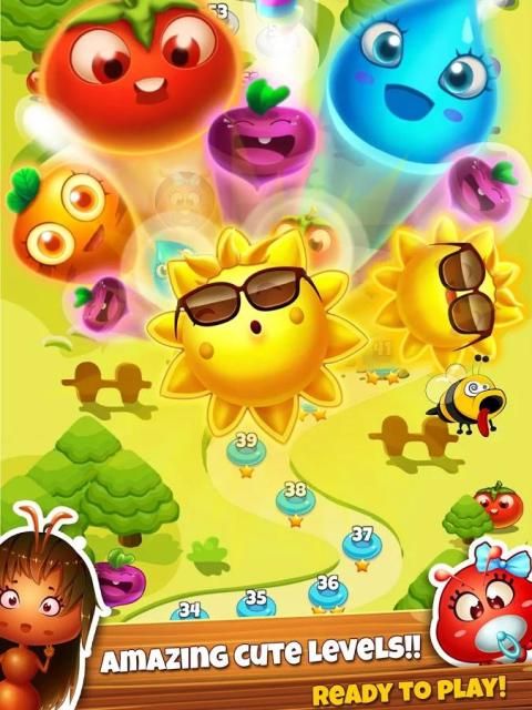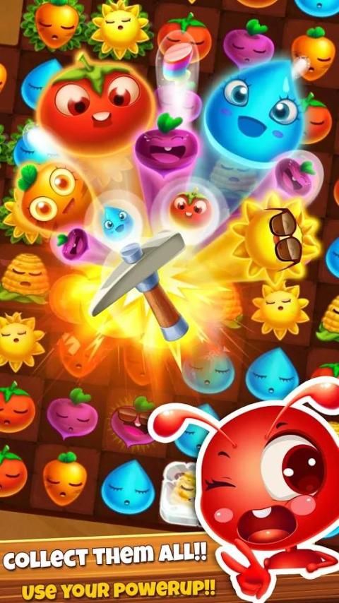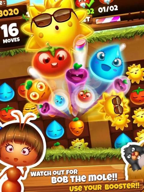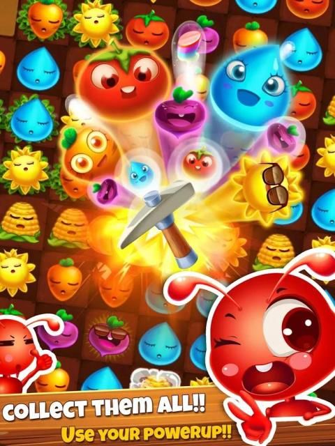 Candy, Jewel and Harry are three ants and best friends in charge of the farming in this big adventure. Move through this Antastic super game while collecting as many Cropsies as you can. Be aware that Bob the mole is always trying to spoil the precious underground Farm Lands, steal or crush many Cropsies as he can along the way. Will you join forces with the Farm Heroes and help to collect the Cropsies and save the day? Play through hundreds of levels of switching and matching farming fun to find out!