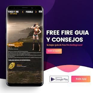 Free Fire battelground Guia y Consejos esta aplicación es de fans y no está asociada con la aplicación original de Free Fire Battleground y contiene algunos gráficos del sitio web oficial de Free Fire.