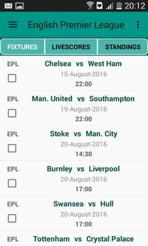 • Press left-side of app icon to view the navigation panel containing league's fixtures, live scores and standings