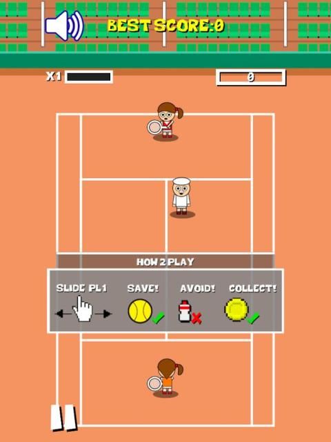 Try to return all tennis balls whilst avoiding flying bottles also coming your way!