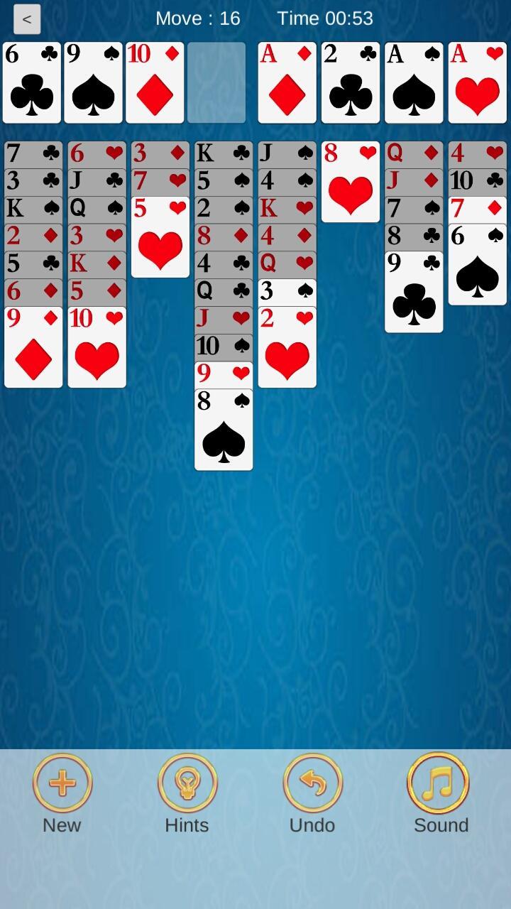 FreeCell Solitaire adds a new element of strategy to the classic solitaire games Klondike. After dealing from a standard deck of 52 cards, use the four free cell spots as placeholders as you try to move all of the cards from the Foundation stacks for a win. Just like Klondike solitaire games, you must move cards from the Tableau to the Foundation cells by suit, in ascending order. Most FreeCell games for android can be solved, if you can find the right strategy and use smart hints of freecell tutorial.