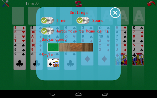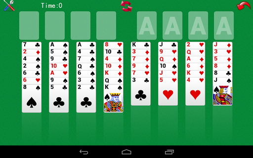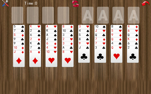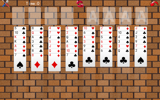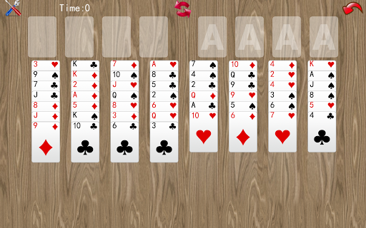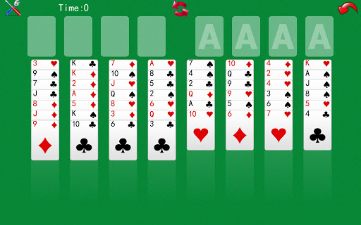 Create four stacks of 13 cards, one per suit in each of the four home cells. Each stack must be built from the low card (ace) to the high (king).