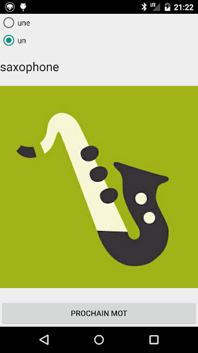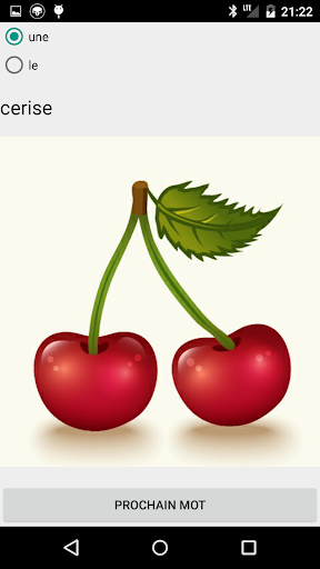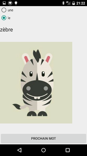 It has 3 modes, you can choose a quiz of 10 words, 20 words or select all words to choose the correct masculine or feminine answer until you get one wrong.