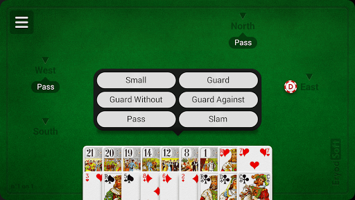 Your opponents and teamates are simulated by an high-level artificial intelligence, that knows the common strategies used in tarot card game. Therefore the game is very realistic, close to game with real players, and the challenge is high.