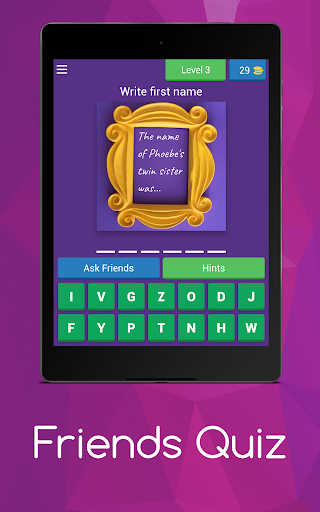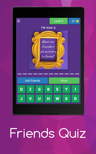 Friends Quiz is the ultimate FRIENDS Trivia for die-hard Friends TV Show’s fans. You can test your knowledge and have a laugh by answering simple questions. The game has more than 500 levels and we are updating more regularly. You won’t have to update your Friends Quiz app to get new levels, it will automatically sync with your game.