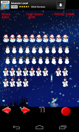 Frozen Invaders is an old school shoot em up game but with a Christmas theme. Masses of snowmen are attacking and you must defend your space. You control Elfred (the elf) at the bottom of the screen, armed only with an unlimited supply of colossal crackers. Look out for the deadly (ok cold) ice cubes that the snowmen are dropping. You can take 3 hits before you are completely FROZEN.