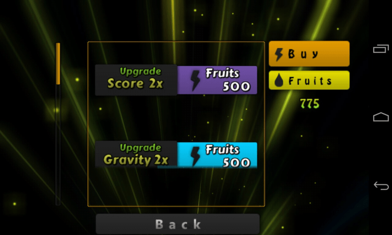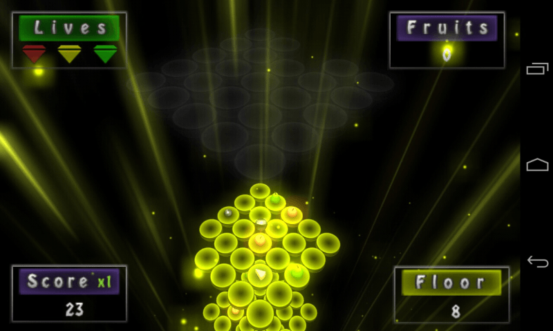 Get Ready For A 3-Dimensional Ball Fall Down, Where Platforms Are Moving Against The Gravity, Survive, Balance & Escape By Steering The Ball Through Series Of Holes, Collecting Power Ups And Slashing, Slicing Juicy & Tasty Fruits That Come Along, Each Fruit Having A Different Impact On The Score, Make Sure That Ball Lands Directly On The Surface Failing That Would Cost A Life. Further More : " Fruit Ball 3D" Is Packed With Features : + High Quality 3D Graphics. + Realistic Physics And Particle Systems. + Immersive Sounds. + Free Of Cost. + Colour Shifting Ambient. + LeaderBoards For Online Score. + Power Upgrades & Unlocks. + Multi-Language Support (Inc : English, Russian, And Turkish). + Supports Both Touch And Accelerometer. (Check Settings). P.S :- + Stable Your Device Before Using Accelerometer.