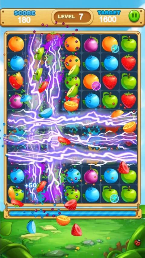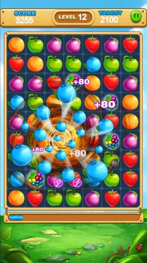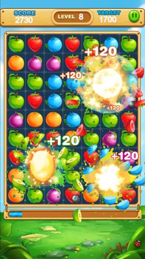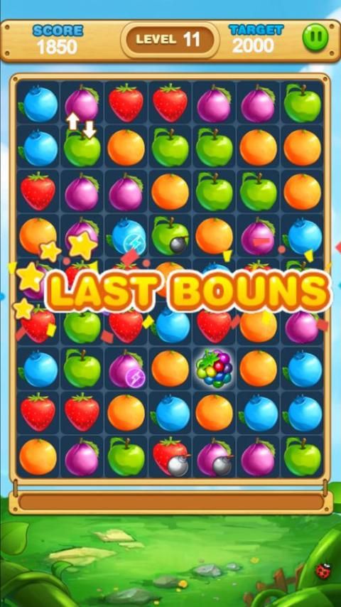 Match three or more same fruits to make them boom! Reach the target score to move to the next level.