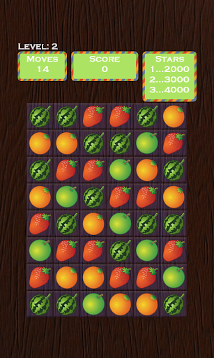 Match 3 in a row or more to remove the fruit. Features 40 levels. More being create soon Several game modes