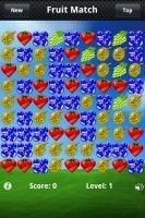 "Fruit Match" is a simple but addictive puzzle game. Match the same kind adjacent fruits by tapping on them. Blocks of at least 3 pop. The more fruits you pop in a tap, the more points you get. After every pop the fruits without support drop down. If there is no block to tap, the game proceed to next level and blank positions will be filled with new fruits. If the board is full but there is no adjacent fruits of at least 3, the game is over.