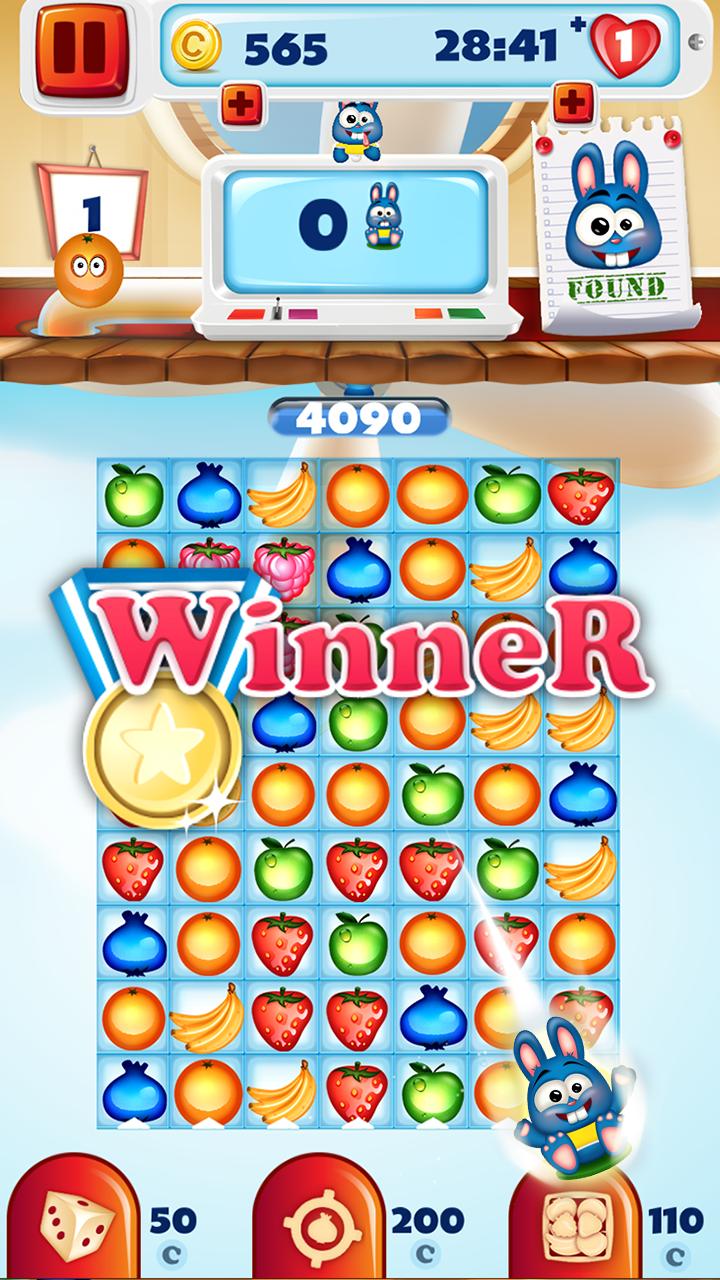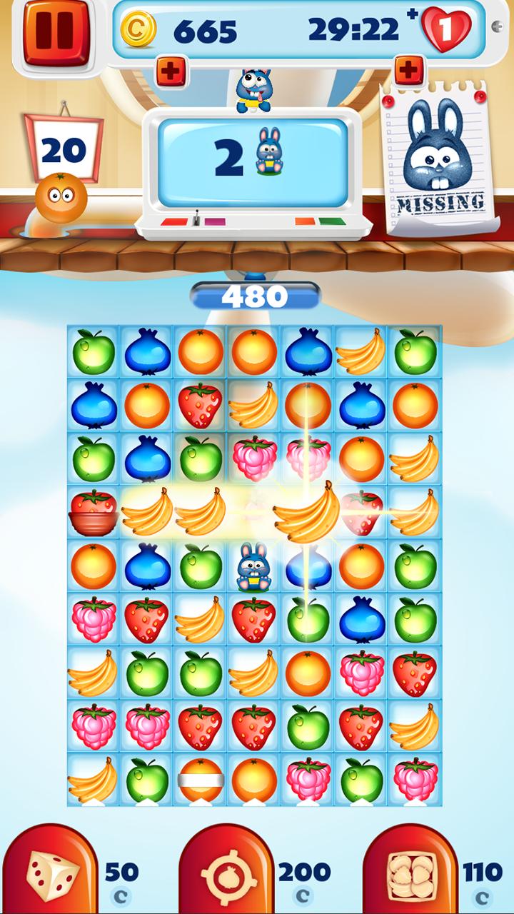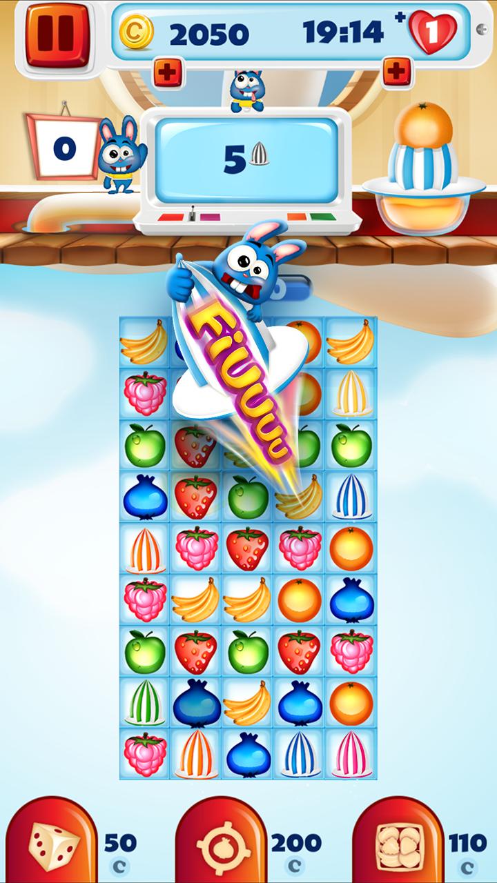 Get yourself in the mood for the ultimate match 3 puzzle adventure and prepare for the most thrilling legend ever! Available as a totally free app, ▼Fruit Pop Match 3 Puzzle Games▼ is a sensational match three game that you wouldn't want to miss! Swipe and pop fruit to achieve challenging yet fun puzzle objectives, dodge persistent obstacles, activate astonishing blast effects and experience a wholly new “puzzle adventure”! A crazy bunny adventure is about to start! Meet your new friend, the cutest bunny in the world and let him lead you through his juicy fruit farm! Enjoy the colorful and cheerful graphics, amusing sound effects and the already known mechanics of popular fruit games. Top-notch performance, smooth and addicting gameplay, impressive visuals – all await you in the unique fruit matching game.