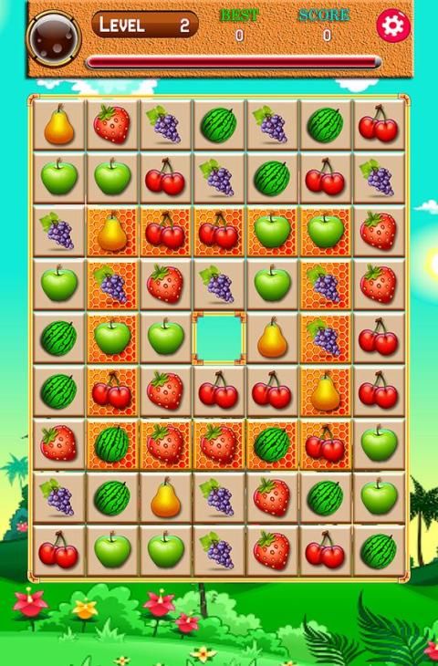 Arrange 3 or more fruit of the same sort in straight lines.