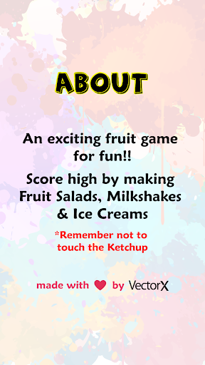 An exciting fruit game for fun! Score high by making Fruit Salads, Milkshakes & Ice Creams. Remember not to touch the Ketchup :P