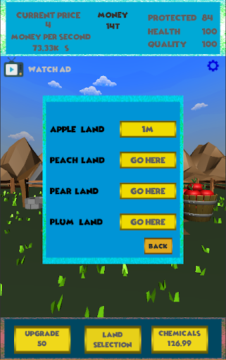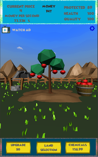 Earn money by collecting apples,then invest in some land and watch your money go up.Start selling different fruits and become one of the richest.Start small,just with one tree but be patient and work hard to earn your own land full of trees,and also different kind of fruits.But you don't stop there,don't forget about your beginnings.Keep an eye on your loyal Apple tree who gave you your first dollars,make sure to keep it healthy.