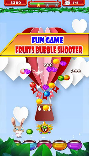 Shoot and pop fruit bubbles in this soothing shooting game, and complete all brain teasers filled with colorful balloons. Complete all levels and win coins with the highest score! This fun fruit bubble shooting game is easy, just download and play, perfect for the whole family to play and enjoy. Begin your adventure, shoot and pop bubbles.