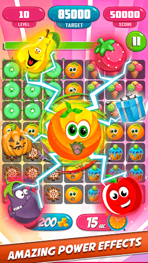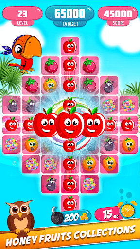 To go on the journey of exploring fruits candy forest world need your help! Unwrap & Collect fruit candies for them. Use booster and magic tools to blast! Blast more than 3 fruit candies will create powerful booster, use them to fruit blast all the challenging obstacles and reach your goal.