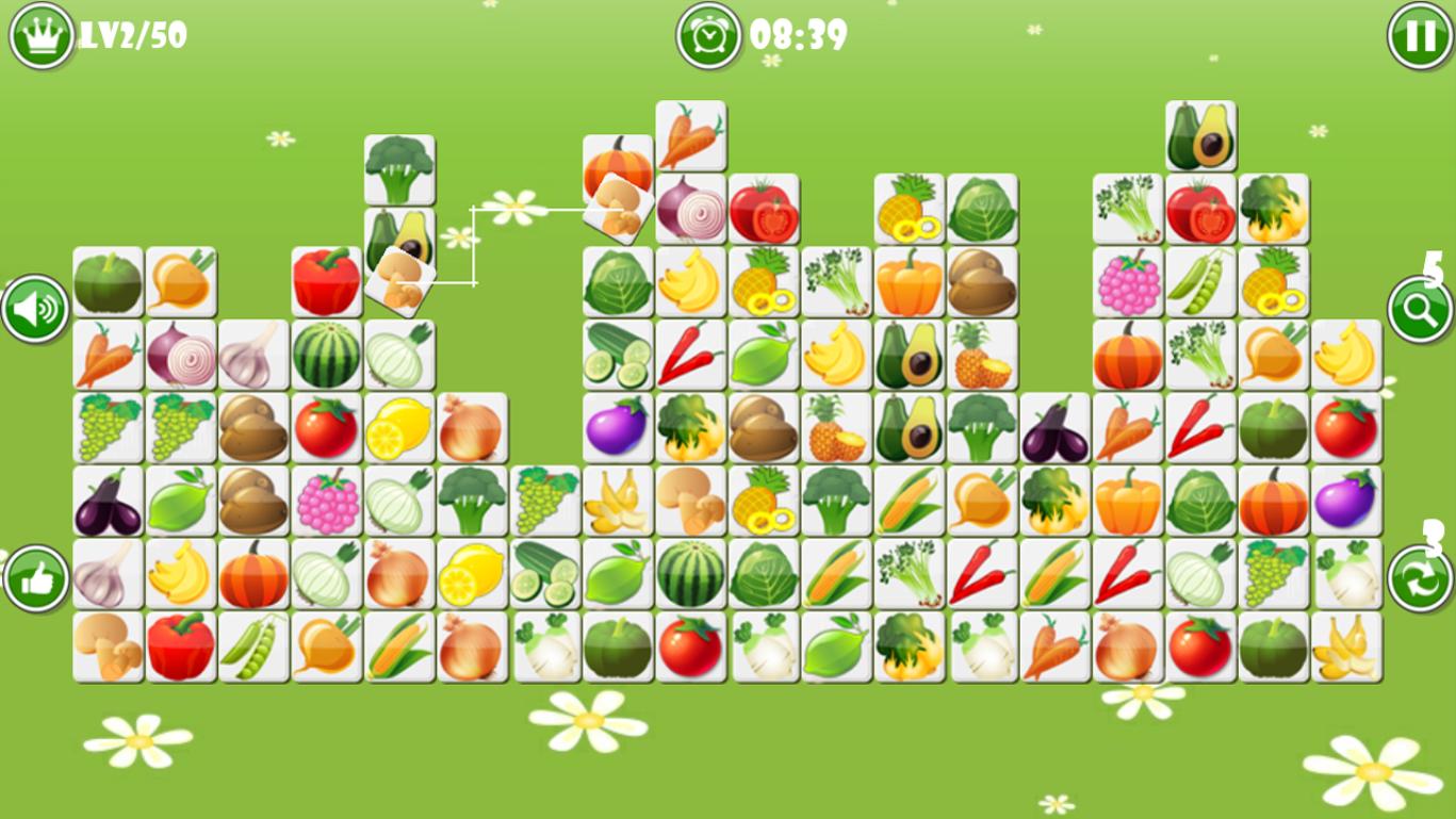 How to play: connect two fruits. Fruits are connected together if the path between them is no obstacle