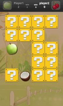 Apple, Orange, strawberry...... There are so many fruits here! And your task is to find these same fruits and match them up. This funny memory game also helps you training memory ability. You can have a competition with your close friend within the two-player battle mode. Have fun!