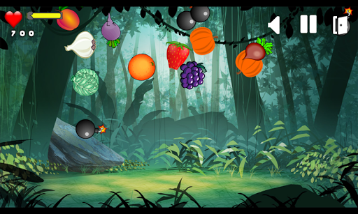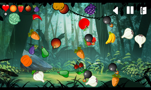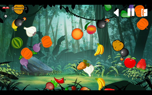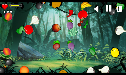 3- Arcade mode: Destroy both fruits and vegetables and of course avoid falling bombs.