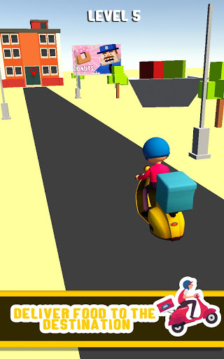Dive into Fun Deliver Rush and find it out. Play with different scooters you like. Its your game. Collect coins for each food order that is delivered. Collect coins and use them to buy the vehicle of your choice.