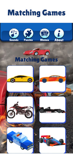 Designed for under 6-year-old kids. Gameplay is simple and fun but also educational, suited for younger children - touch the screen to play the sounds of extreme sport car, engine or racing then match it with the correct vehicle.