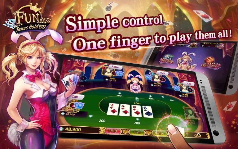 Fun Texas Hold'em Beta adopts the standard Texas Hold'em rules with No-Limit type of gameplay.