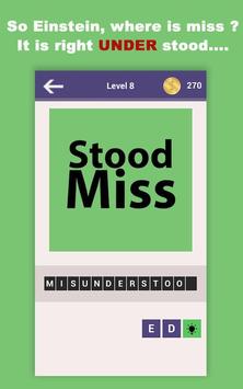 - Many picture combos to solve, that will leave you guessing. Strain your brain, guess the answer or there is no way out! Just kidding, we always have a clue for you. So you can guess the word using our clues. There are also other features that can help you solve the riddles like hints and letter elimination.