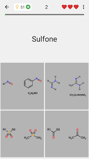 The app is translated into 14 languages, including English, German, Spanish and many others. So you can learn the names of the functional groups in any of them.