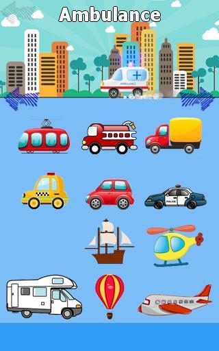 Funny Cars Game for Kids is a game where your children will learn the name of the transports associating their sounds with their images and their names.