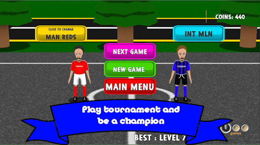 Funny football includes different game modes. You can play single matches or tournaments. You can choose legendary jerseys of 14 different football clubs. With the prizes you win in the game you can buy the football team you want and arrange free matches.