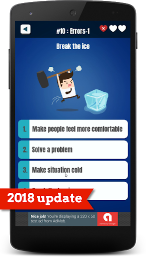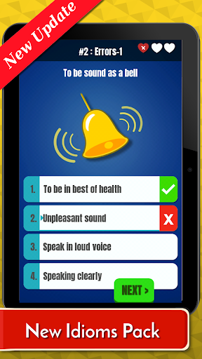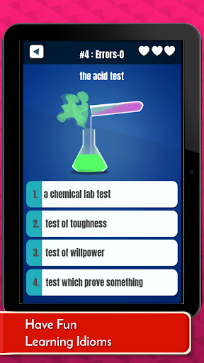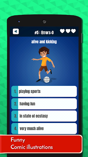 Funny Idioms Quiz Game provides a fun and quick way to learn the confusing meanings of English Idioms in a Fun way.