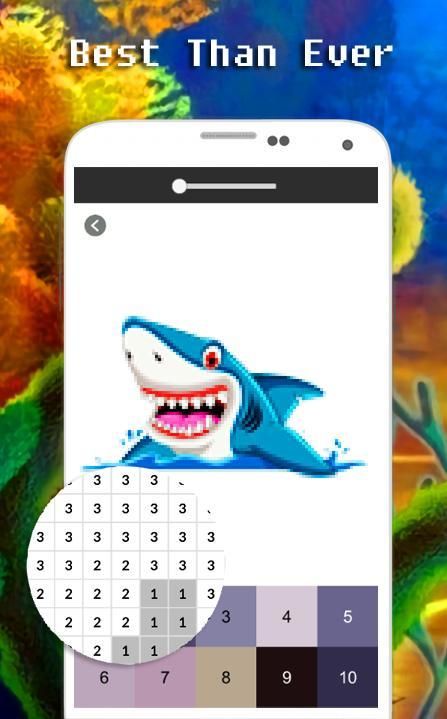 For those of you who like Shark, Funny Shark Color By Number - Pixel Art is an application coloring with numbers of beautiful pictures of funny shark.