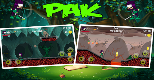 A multi - stage ninja game with more than 30 stages is very difficult in the face of the bad guys can launch beans on them and fight with the sword and jump on their heads and their arms and there are two characters you can play it