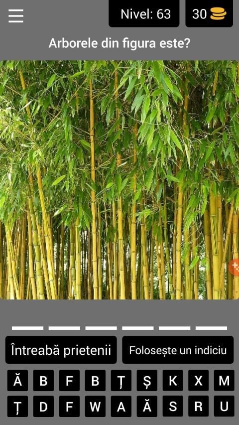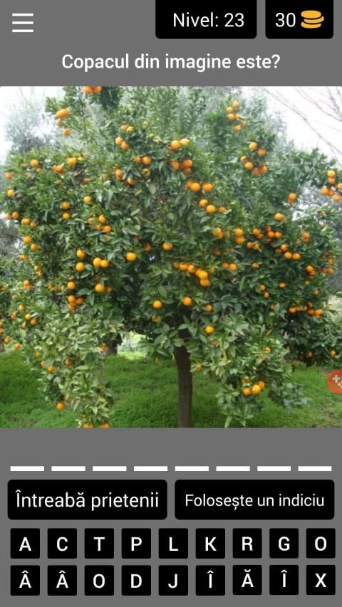 Jocul constă în vizualizarea imaginilor şi completarea în spaţiile libere a denumirii copacului care este conţinut în imagine. Înlăturarea unei litere puse greşit se face apăsând pe ea, iar butonul "Foloseşte un indiciu" vă poate ajuta să rezolvaţi întrebarea. Jocul are peste 100 de nivele, dar urmează actualizarea lui cu noi nivele în curând. Succes!