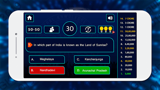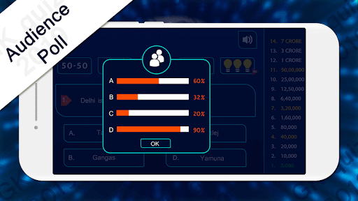 You will be presented a set of 17 questions and if you answer all of them correctly, you become a Crorepati in this Quiz. You can take the help of 4 lifelines. With a big pool of variety questions, you will not get repetitive questions.