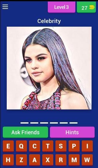 “Guess The Celebrity” has many levels. Correct answers are awarded coins. Compete with your family and friends.