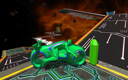 Welcome to the exclusive space bike racing game. Get ready to race on your Tron bike in the galaxy far away from this earth. The game features different galactic superbikes and multiple levels with difficult barriers and obstacles. This space racer game will give you the feel of being in outer space on a space mission with you neon bike. Start your engine and put the pedal to the metal on your superbike, soul cycle and leave a trail of light as you move along the game pushing the boundaries of your speed and your quick reaction on sudden moves controlling the light bike.The splendid 3d effect scene enables you to experience traps and barriers.During this sky, racer tries avoiding the obstacles and don't fall off the track because it will end your game. Try to keep an eye on the time as this is a time limit game.