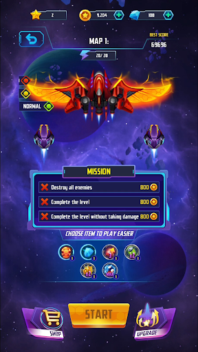 Starting with a small, basic spaceship, you venture deep into space to stop the invaders from invade and consume planets. You must travel through the midway of the galaxy and engage the alien as soon as possible before they get any closer to your homeland. From a low-tech aircraft, you will find yourself upgrading your ship, equipment, gun, etc... Of course you will need more powerful gun, shield to fight enemies and bosses and to process to the next level. But this game is not a pay to win game. While you're playing this game you will earn enough rewards for upgrading you stuff. It will also does not consume much of you time though.