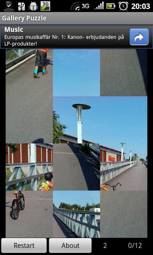Use your images to create puzzlesThis your standard puzzle game Move the pieces around until your complete the puzzle. The easiest levels are possible for children to solve. Use settings to change the game size.