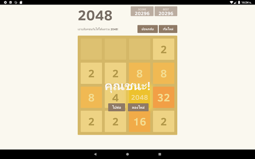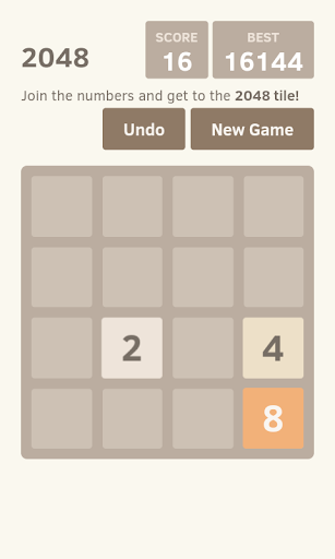 Swipe (Up, Down, Left or Right) to move the tiles. When two tiles with the same number touch, they combine into one. When 2048 tile is created, the player wins!